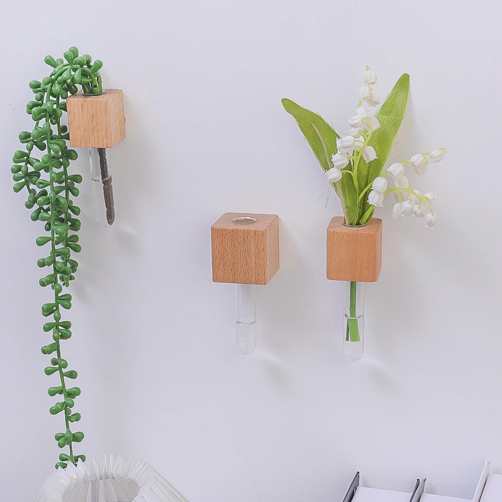 Mini Wooden Test Tube Fridge Vase – Creative & Sentimental Decoration